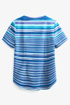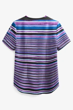 Easy STRETCH By Butter-Soft™ Sunset Watercolor Stripe Women’s 2-Pocket Tuck-In Print Scrub Top