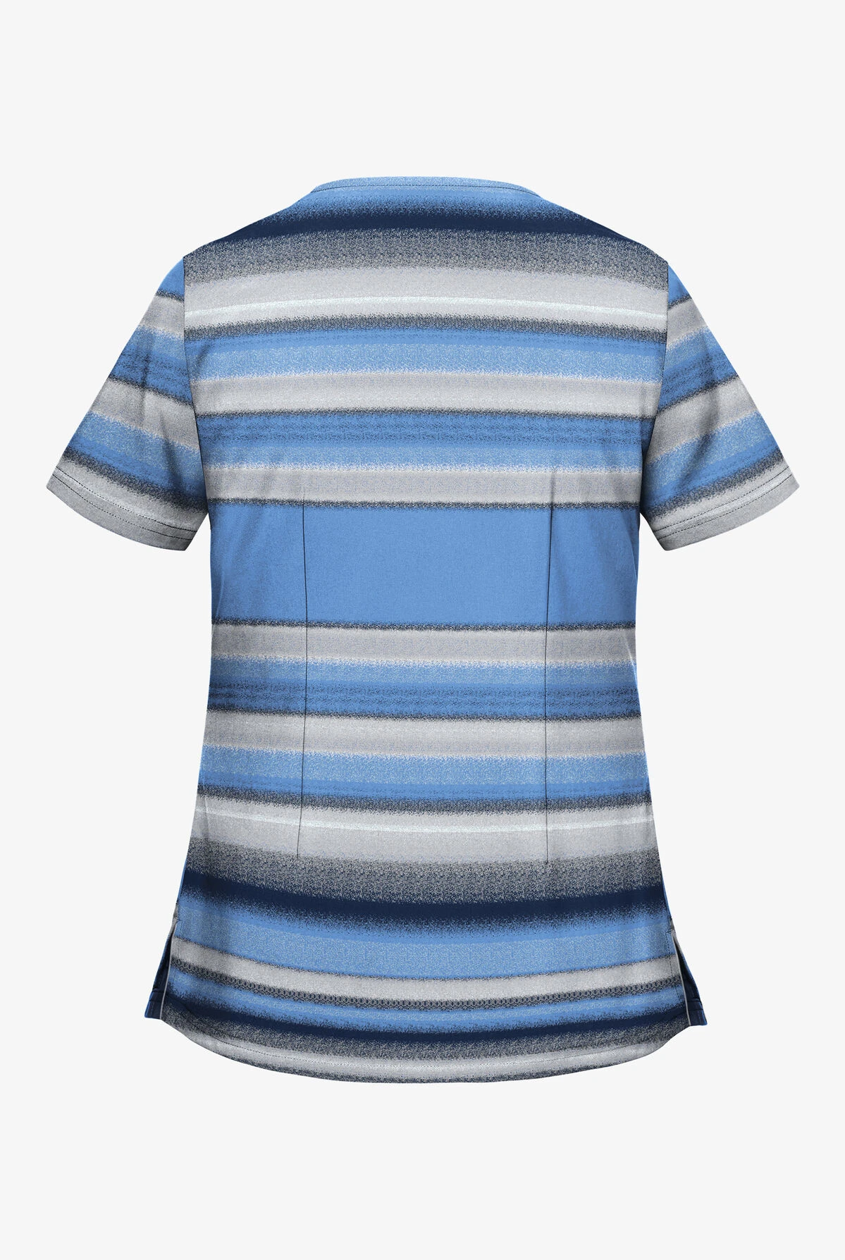 The Butter-Soft Alluring Stripes Ceil V- Neck Print Scrub Top features a relaxed classic fit with a flattering shaped V-neck. It has 2 roomy angled welt pockets. The top also includes side vents for ease of movement during long days. The top has back darts for better fit. Also, it has a double needle top-stitch throughout. Made of 93/7 poly/spandex.