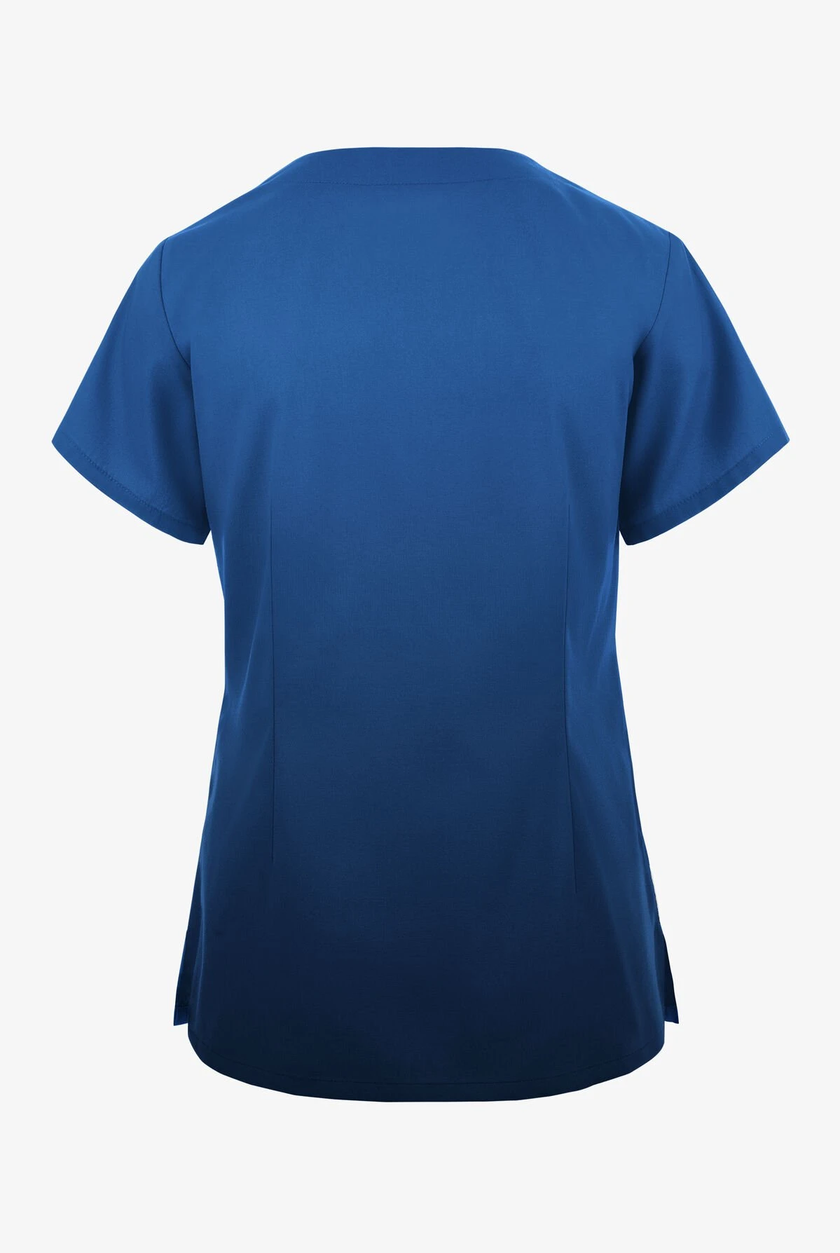 A scallop neckline is a softer way to V – and we love it. This top has a comfortable classic fit enhanced by shaping darts in back. The side pockets are handy and discreet. Side vents add a hint of ease