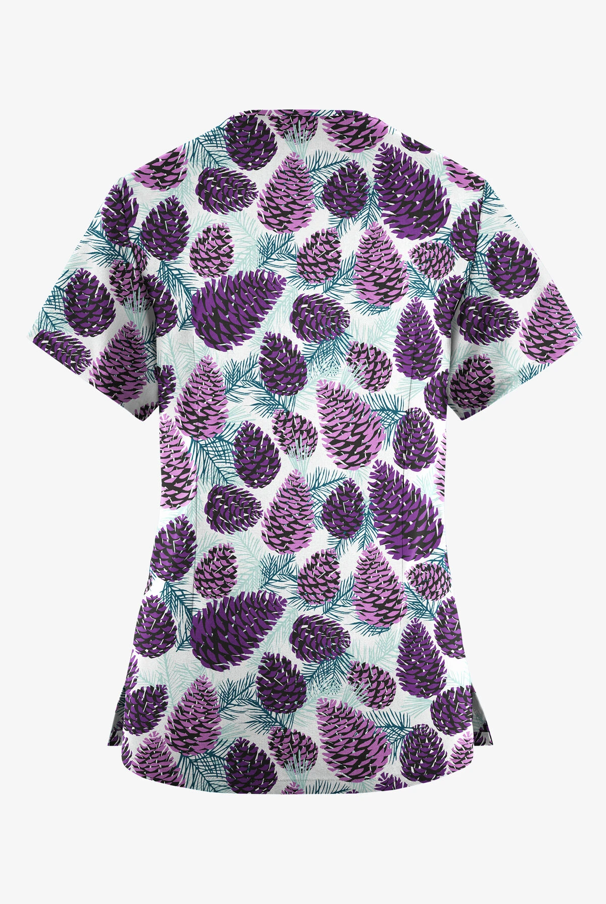 - Features pine cones from the coolest forest ever in shades of purple and teal