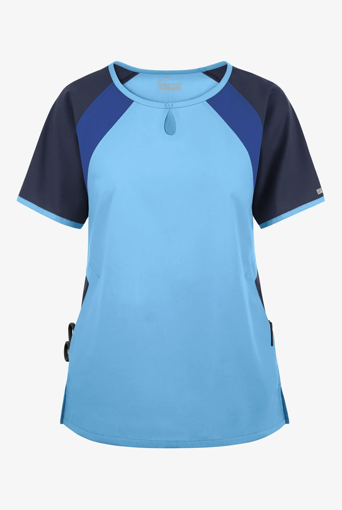 This is the kind of tricky colorblocking we just love. Sleeves and side-front panels in a contrasting color, with front raglan bands in a third color. And that pretty keyhole neckline! Lovely. Our Butter-Soft Originals are proof there’s comfort in simplicity. Classic styles, soft fabric and built to last. Always an exceptional value.