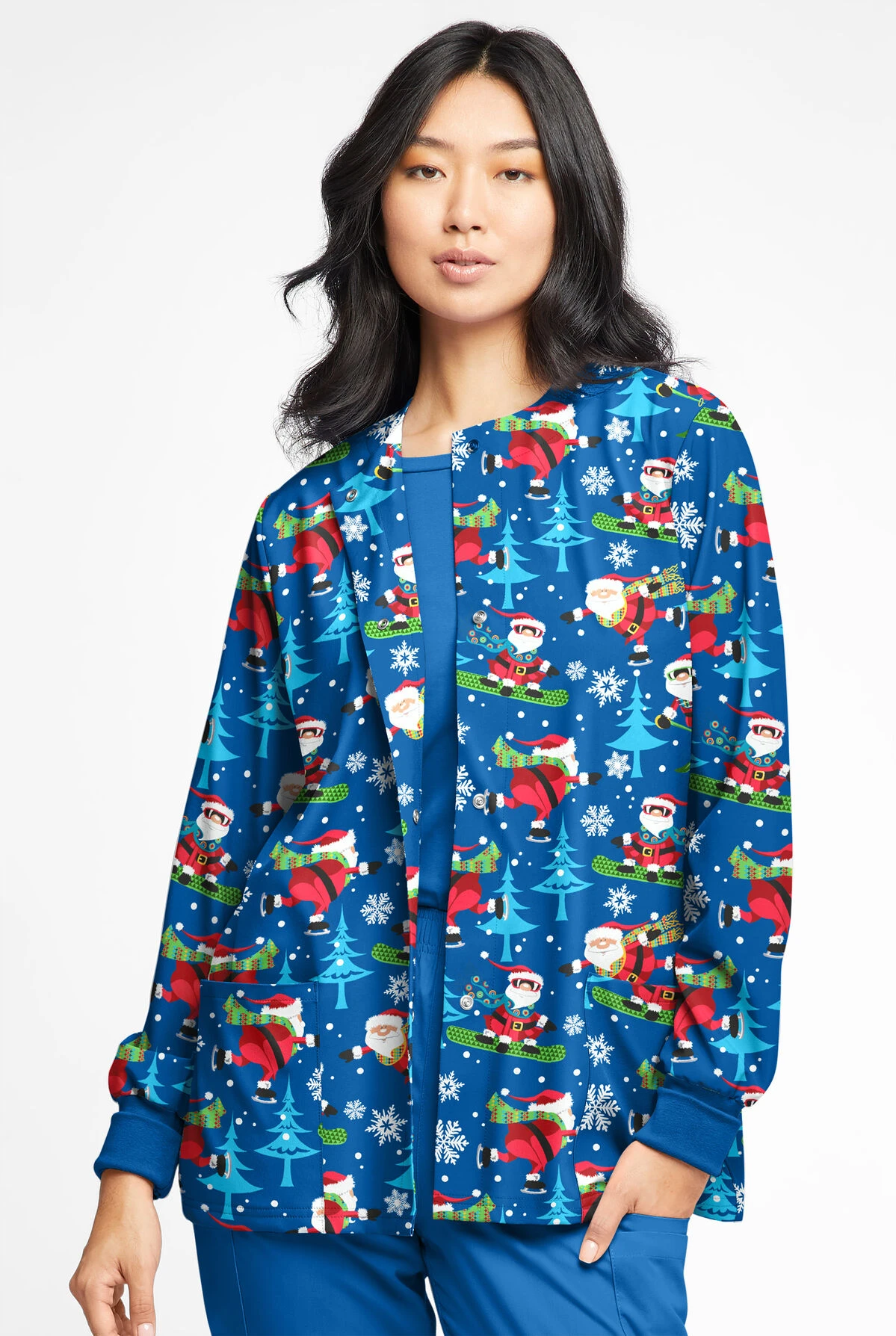 Consider this your go-to warm-up scrub jacket. Simple, clean design is universally flattering and has just enough storage with its two oversized patch pockets. When isn’t Santa on vacation? Oh right – there is that one night. Okay, he’s earned his ski trip.