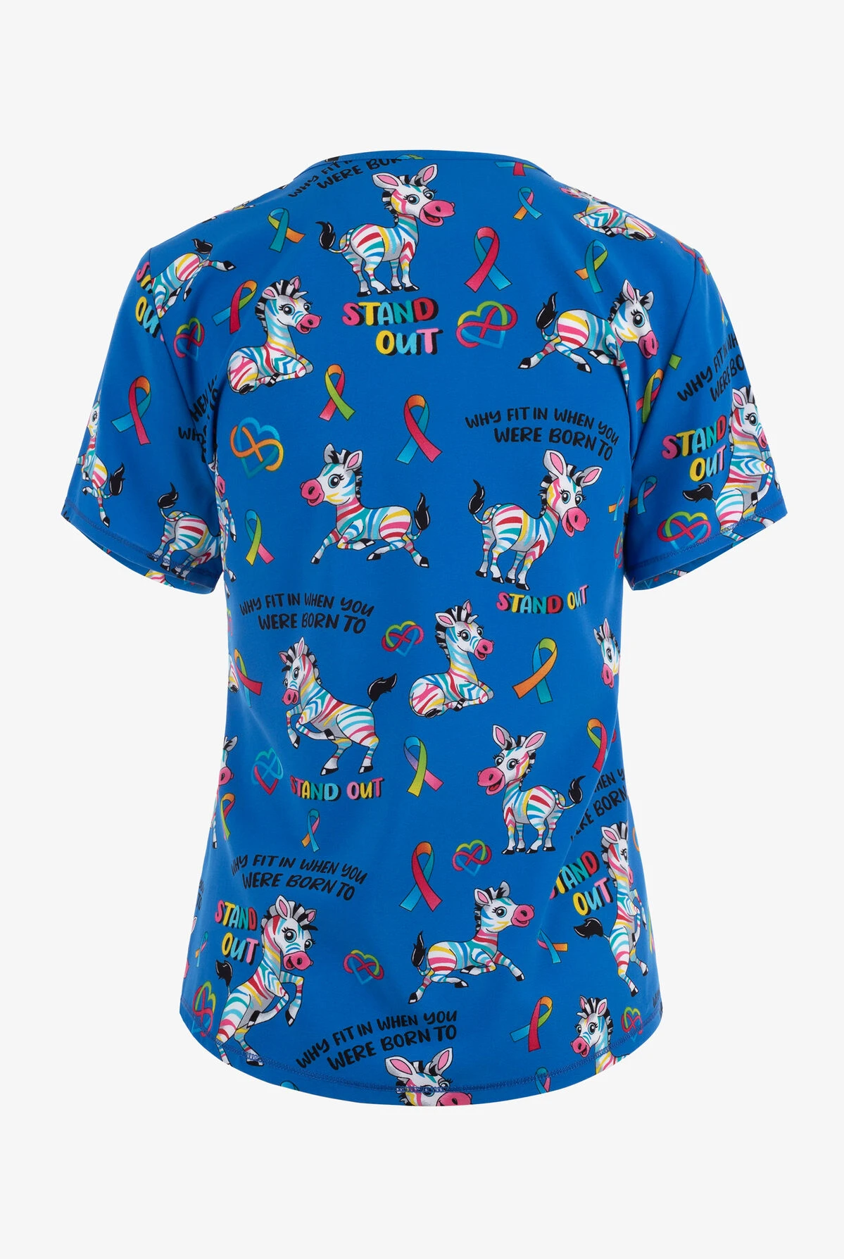 - This Autism Awareness print has colorfully striped playful zebras on a royal background