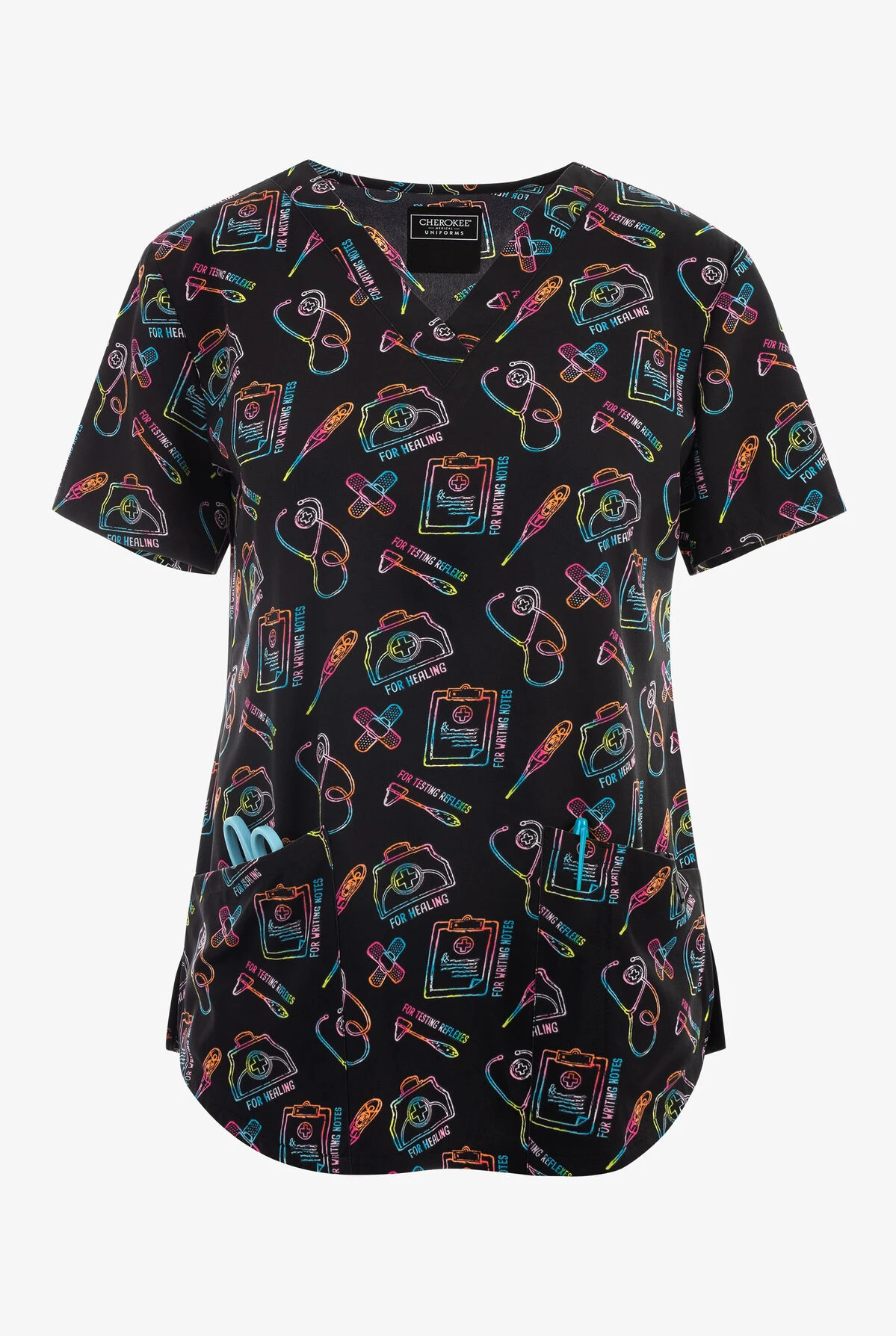 - Colorful Ombre thermometers, stethoscopes, Band-Aids, and nursing bags on a black background