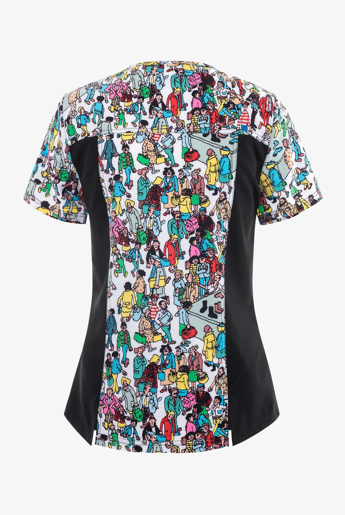 Cherokee Tooniforms Where’s Waldo? Women’s 2-Pocket STRETCH V-Neck Print Scrub Top