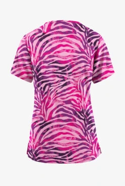 Easy STRETCH By Butter-Soft™ Exotic Zebra Flirt Women’s 4-Pocket Zip Curved Neck Printed Scrub Top