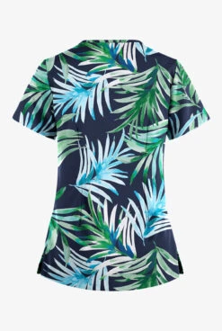 Easy STRETCH By Butter-Soft™ Magical Garden Navy Women’s 4-Pocket Lace Up V-Neck Printed Scrub Top