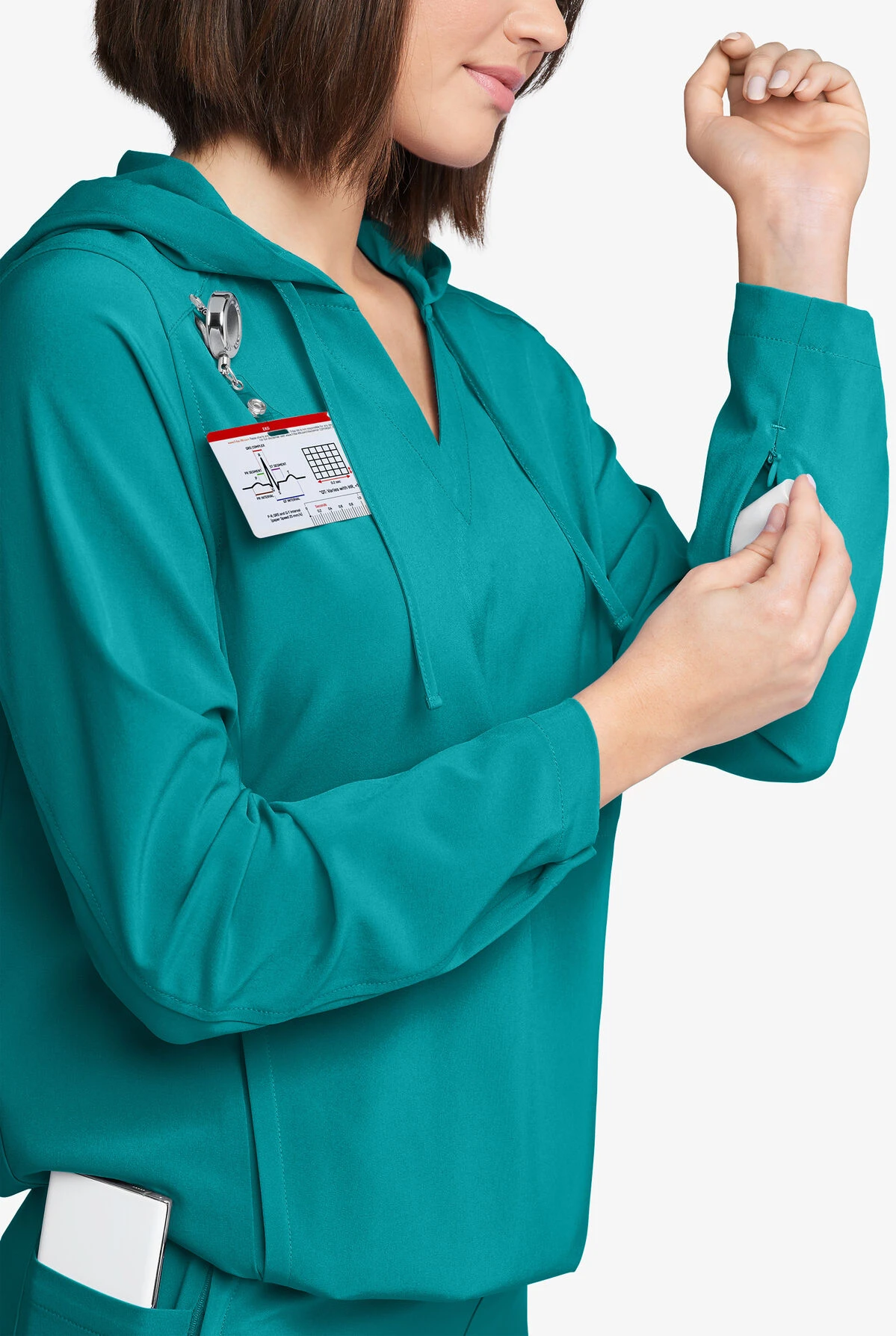 The key to comfort any time of year is layering—and this hoodie’s a perfect way to do it. Soft and lightweight, it has a kangaroo pocket with two mesh pockets inside. Lets you store essentials or warm your hands. Easy Stretch by Butter-Soft scrub collection is designed for a modern look and easy fit for very long shifts and made with performance 4-way stretch comfort fabric that also repels lint, fur, and hair.