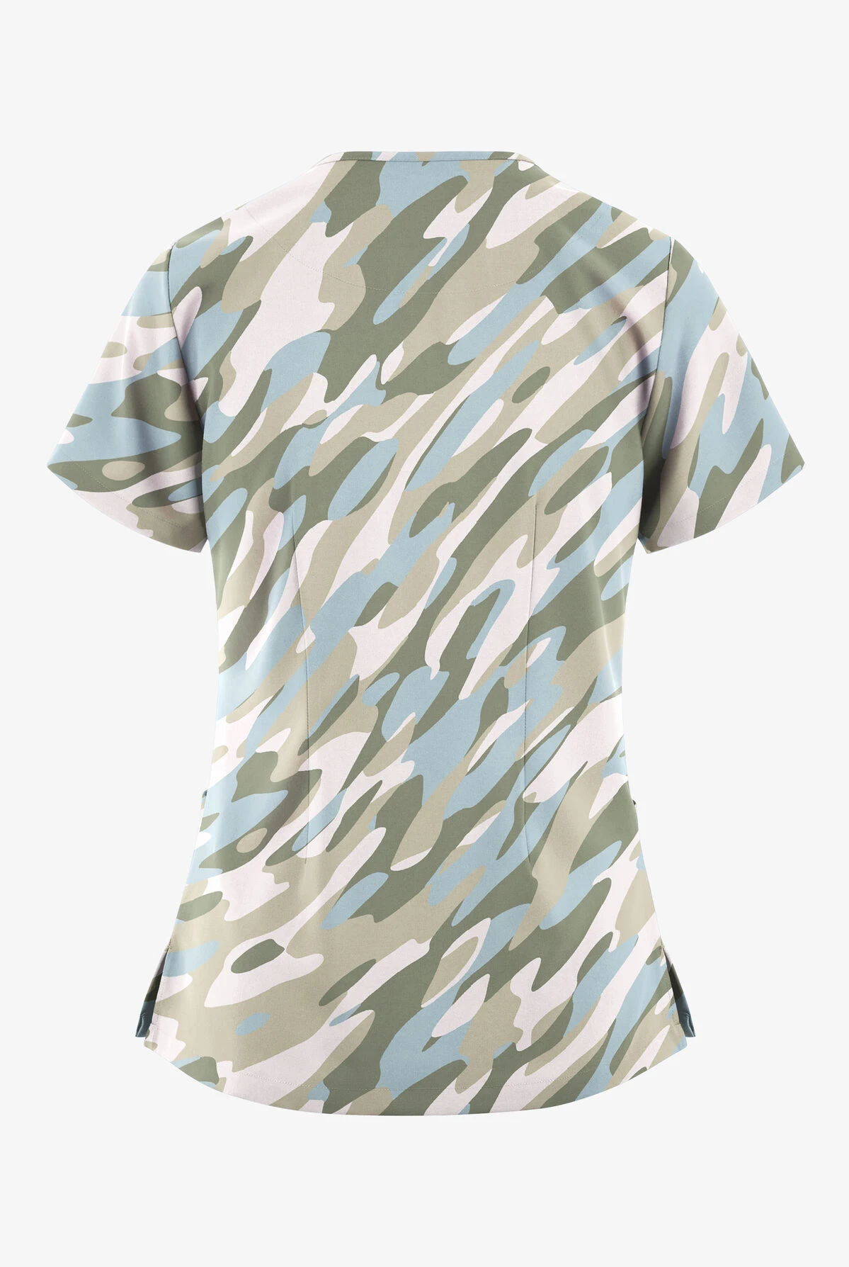- Features a modern angled camo in classic colors on white