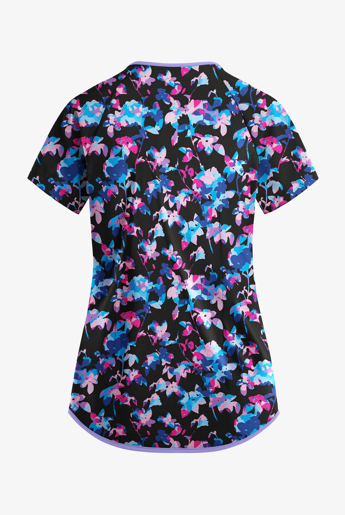 Raglan sleeves and a crossover v-neckline give a traditional scrub top a subtle update.