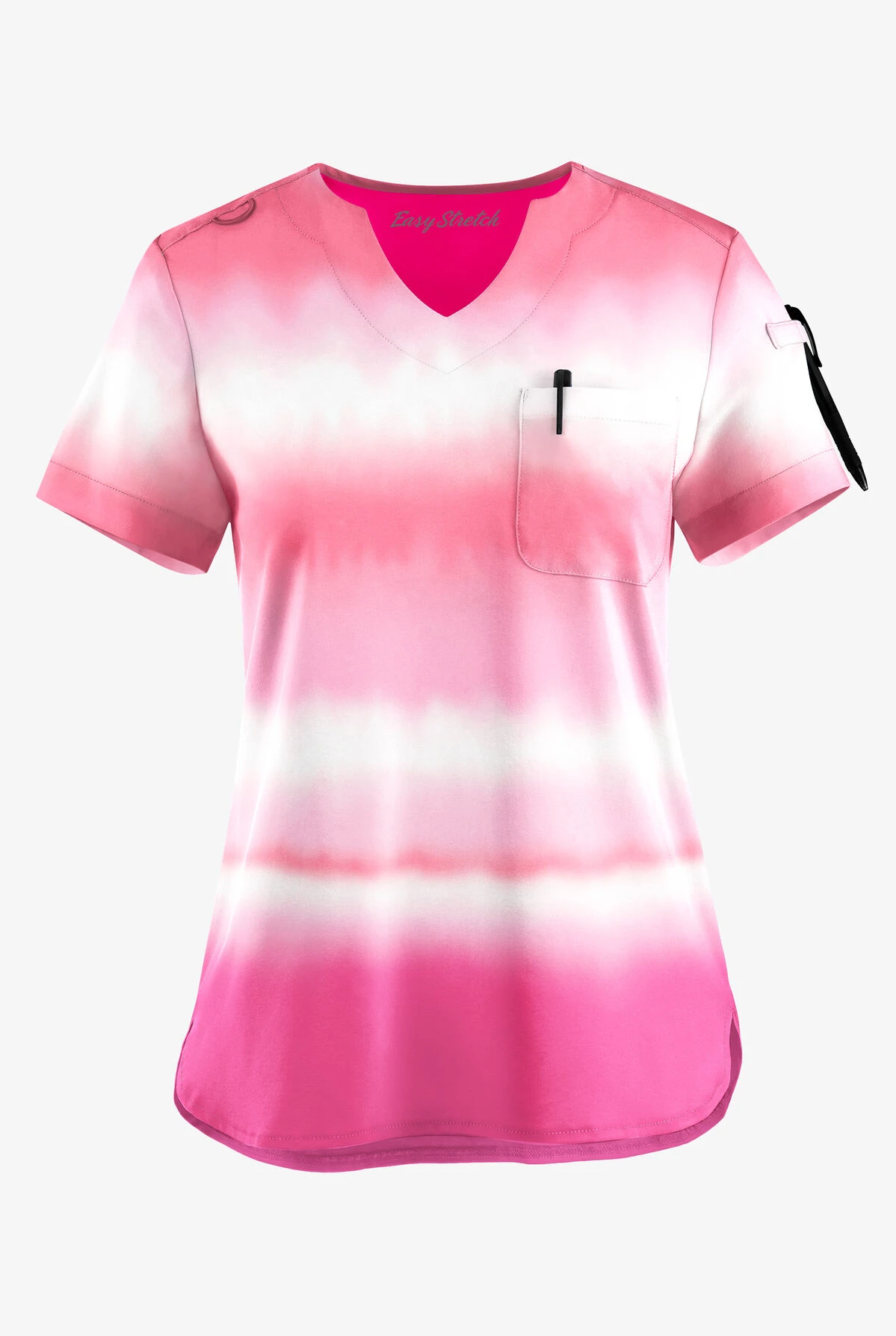 Only @UA® worn tucked in our out, our scallop-neck scrub top is perfect either way. Its versatility is complemented by the practicality of multiple loops and a single chest pocket. Neckline is divine! Easy Stretch by Butter-Soft scrub collection is designed for a modern look and easy fit for very long shifts and made with performance 4-way stretch comfort fabric.