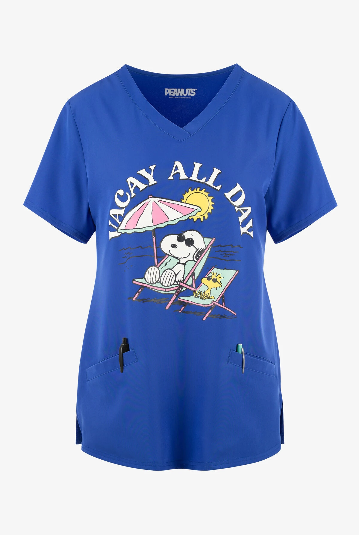 - From the comic strip Peanuts, Snoopy and Woodstock lounging around on beach chairs in shades on a royal background