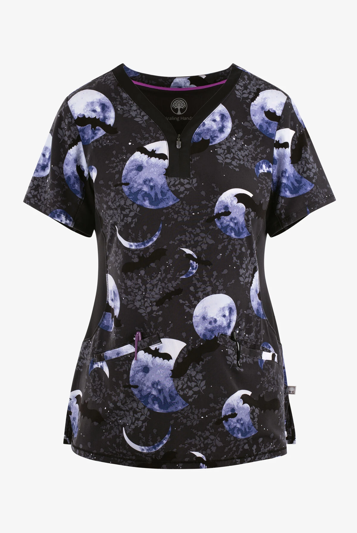 - Moons and bats on textured navy background