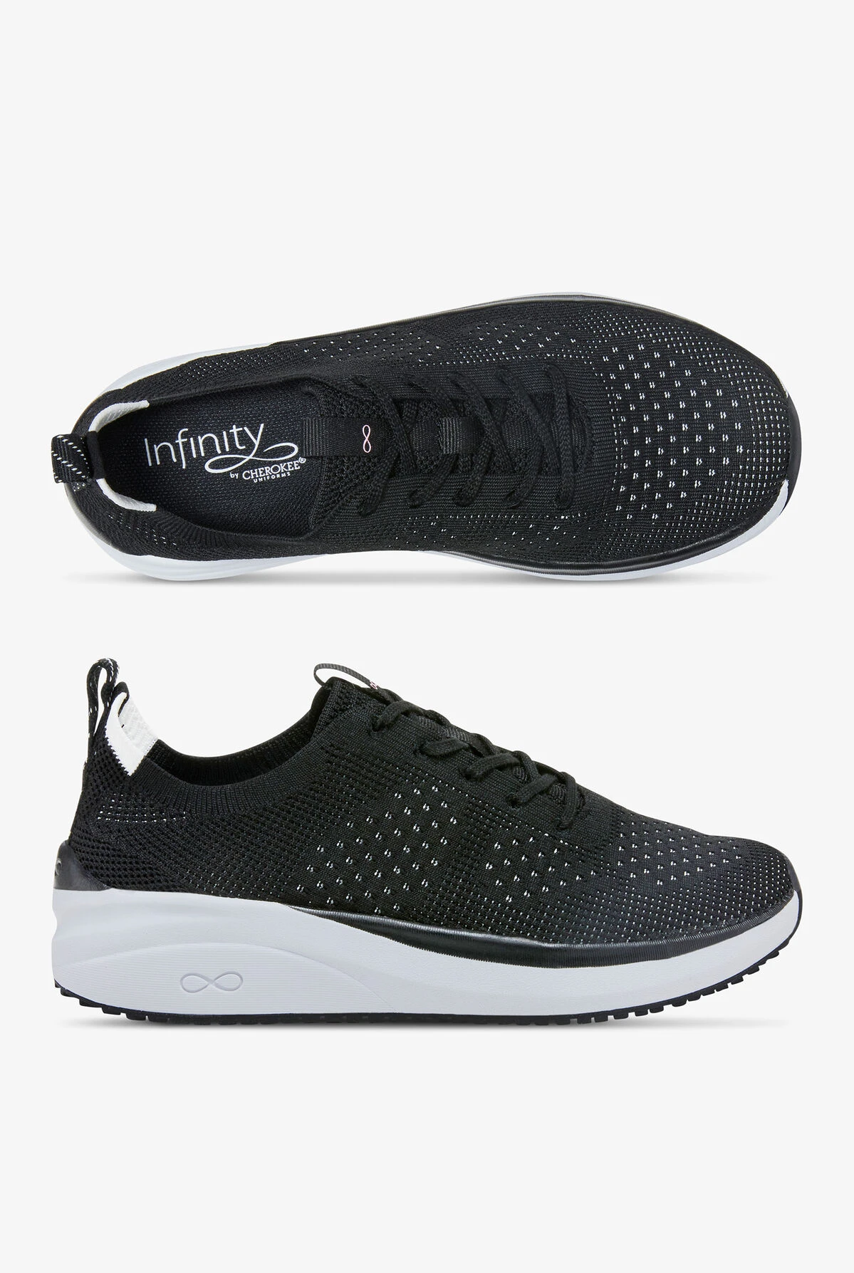 Infinity By Cherokee Women’s Everon Knit Black/White Athletic Lace Up Shoes