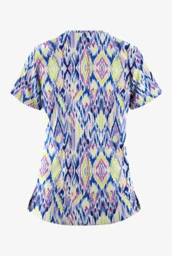 Easy STRETCH By Butter-Soft™ Enchanting Ikat White Printed Women’s 2-Pocket V-Neck Scrub Top
