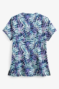 Easy STRETCH By Butter-Soft™ Falling Fronds Navy Women’s 4-Pocket Zipper Neck Print Scrub Top