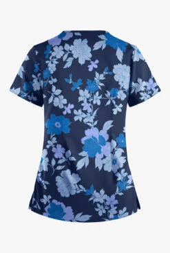 Easy STRETCH By Butter-Soft™ Flower Splash Navy Women’s 4-Pocket Lace Up V-Neck Printed Scrub Top