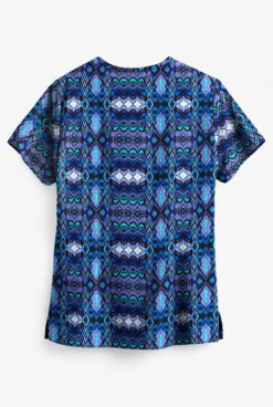 Easy STRETCH By Butter-Soft™ Wild Border Teal Women’s 1-Pkts Scallop Neck Tuck-In Print Scrub Top