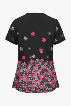 UA Butter-Soft Botanical Cascade Black Printed Women’s 2-Pocket V-Neck Scrub Top