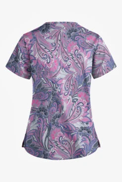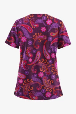 UA Butter-Soft STRETCH Vibrant Paisley Eggplant Women’s 2-Pocket V-Neck Printed Scrub Top
