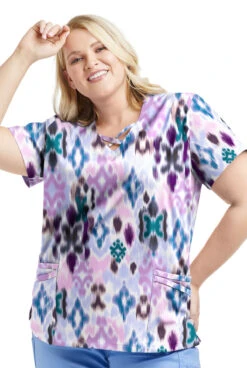 UA Butter-Soft STRETCH Varna Ikat Orchid Women’s 4-Pocket Crisscross Printed Scrub Top