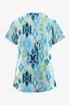 UA Butter-Soft STRETCH Varna Ikat Turquoise Women’s 4-Pocket Grommet Printed Scrub Top