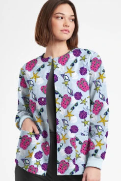 Butter-Soft Originals Walk On The Beach Morning Dew Women’s 3-Pocket Warm-Up Printed Scrub Jacket