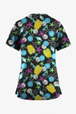 Butter-Soft Originals Walk On The Beach Women’s 7-Pocket Curved V-Neck Printed Scrub Top