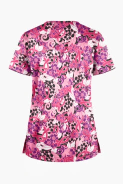 Butter-Soft Pink Ribbon Bouquet Women’s 1-Pocket V-Neck Tuck-In Print Scrub Top