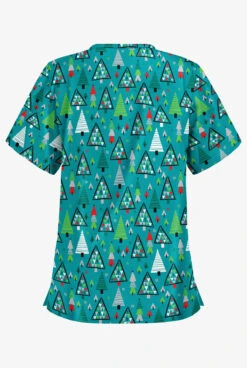 Butter-Soft X-Mas Park Teal Women’s 2-Pocket Relaxed Fit V-Neck Print Scrub Top