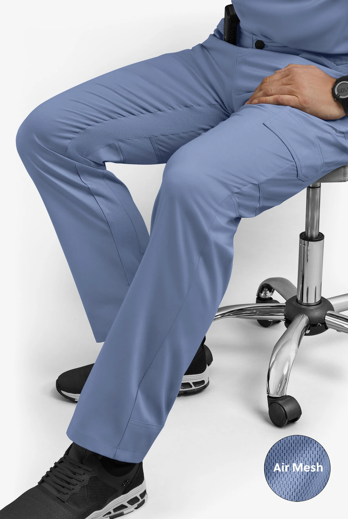 The air-mesh panels in the inseam and back of knees in our men’s scrub pants keep you cool all day long. Plenty of pockets for pens, cell phone and more. Every item in our Advantage STRETCH scrub collection is designed and tailored specifically for men and made for comfort with easy-care, 2-way stretch fabric.