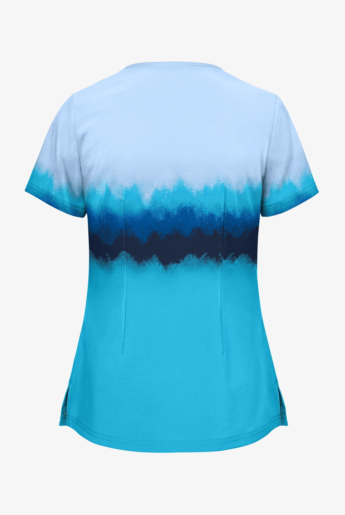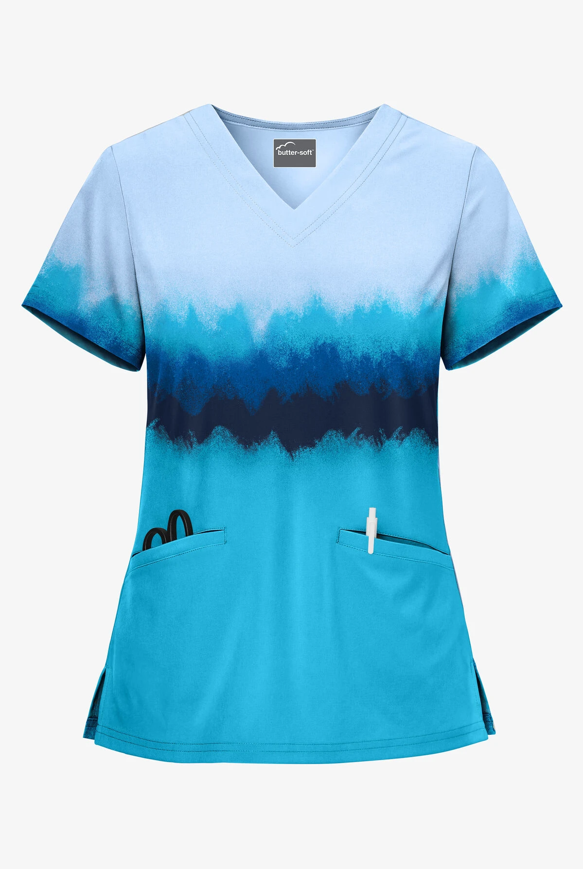 UA Butter-Soft Painted Stripes Turquoise Women’s 2-Pocket V-Neck Print Scrub Top