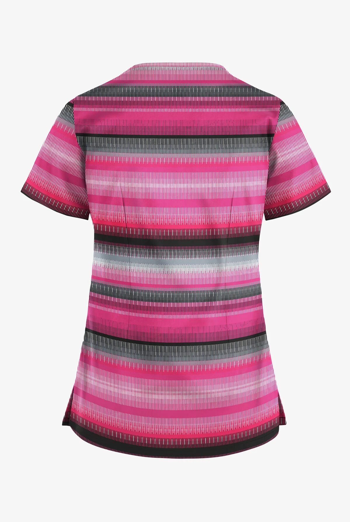 The UA Butter-soft Stretch reigning stripes rosebud women’s 4-pocket criss cross print scrub top features a tailored fit through the chest, back darts, and a sophisticated criss cross trim detail on the bottom of the rounded v-neckline. For all your storage needs, there are 4 front pockets, and the side slits make this top flexible for all day wear. Made of 93/7 poly/spandex.