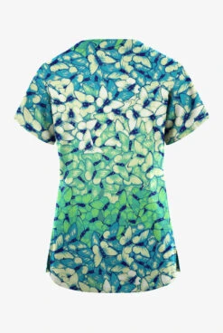 Butter-Soft Originals Garden Butterflies Teal Women’s 2-Pocket Classic Fit V-Neck Printed Scrub Top