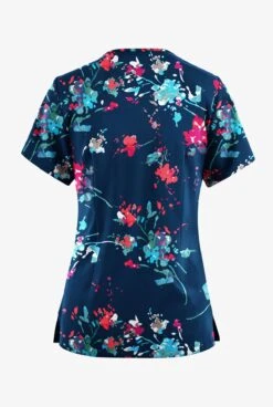 Butter-Soft Originals Floral Splash Navy Women’s 4-Pocket Rounded V-Neck Printed Scrub Top