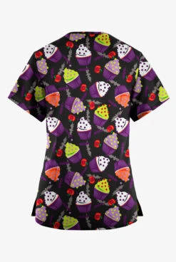Butter-Soft Originals Halloween Treats Black Printed Women’s 4-Pocket Rounded V-Neck Scrub Top