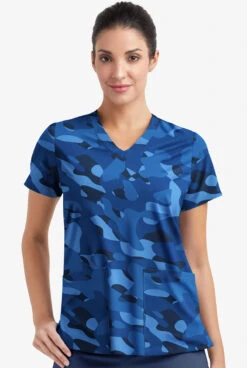 Easy Stretch By Butter-Soft Cloud Camo Navy Women’s 2-Pocket Mitered V-Neck Printed Scrub Top
