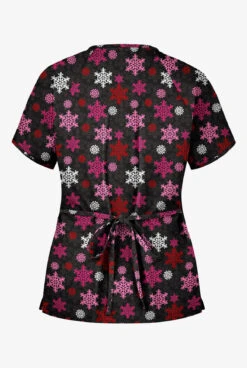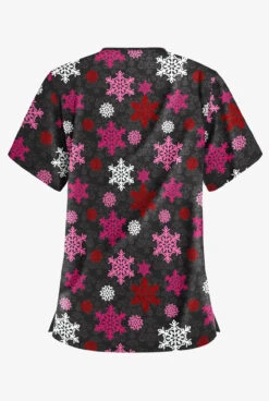 Butter-Soft North Pole Party Red Women’s 3-Pocket Criss Cross Printed Scrub Top