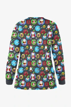 Butter-Soft Christmas Stickers Pewter Women’s 2-Pocket Warm-Up Print Scrub Jacket