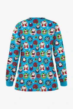 Butter-Soft Christmas Stickers Turquoise Women’s 2-Pocket Warm-Up Print Scrub Jacket