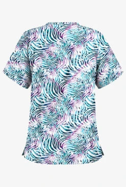 Butter-Soft Abstract Zebra Navy Women’s 3-Pocket Criss Cross Print Scrub Top