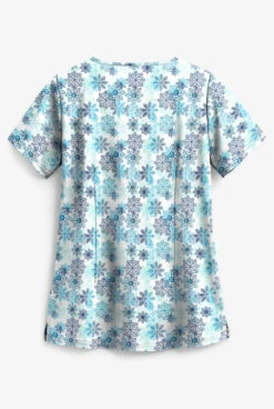 Butter-Soft Falling Snowflakes Aqua Moon Women’s 4-Pocket Notch Neck Print Scrub Top