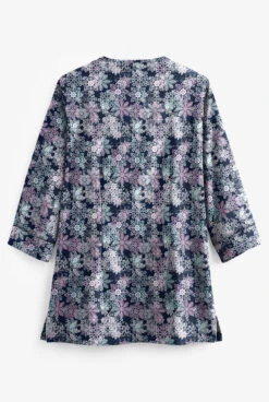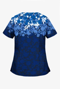 Butter-Soft Floral Shadows Navy Women’s 2-Pocket V-Neck Print Scrub Top