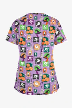 Butter-Soft Halloween Stickers Orchid Women’s 4-Pocket Rounded V-Neck Print Scrub Top