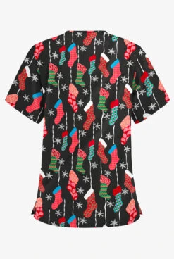 Butter-Soft Waiting For Santa Women’s 3-Pocket V-Neck Print Scrub Top