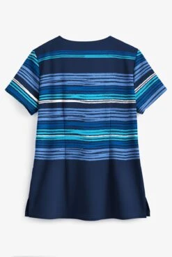 Butter-Soft Striped Navy Women’s 2-Pocket V-Neck Print Scrub Top
