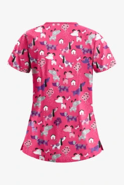Butter-Soft Walk In The Park Fuchsia Women’s 3-Pocket Criss Cross Print Scrub Top