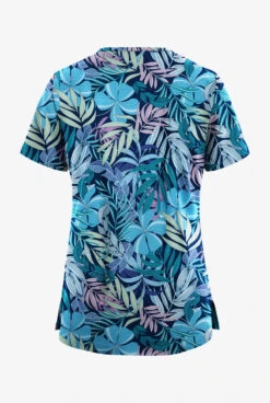 UA Butter-Soft STRETCH Tropical Mix Women’s 6-Pocket Peasant Style Printed Scrub Top