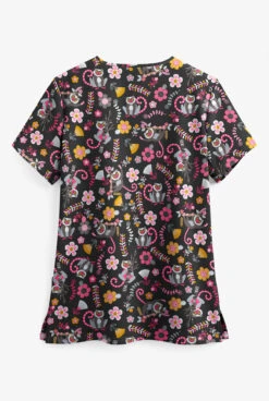 UA Butter-Soft STRETCH Lemur Love Black Printed Women’s 2-Pocket V-Neck Scrub Top