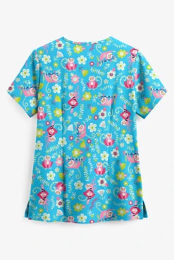 UA Butter-Soft STRETCH Lemur Love Turquoise Women’s 4-Pocket Criss Cross Print Scrub Top